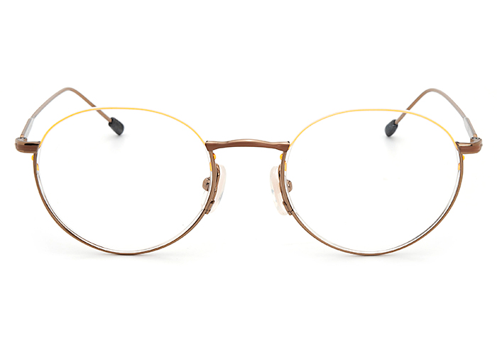発色の良い極細のナイロン糸がアクセントになり、アンダーリムなのにアイライン効果を発揮するメタルフレーム。糸と同じFC(手塗り加工)をヨロイやテンプルに施すことで切れ長な目元を表現しました。テンプルエンドのセラミックパールはバランサーとしての役割も。