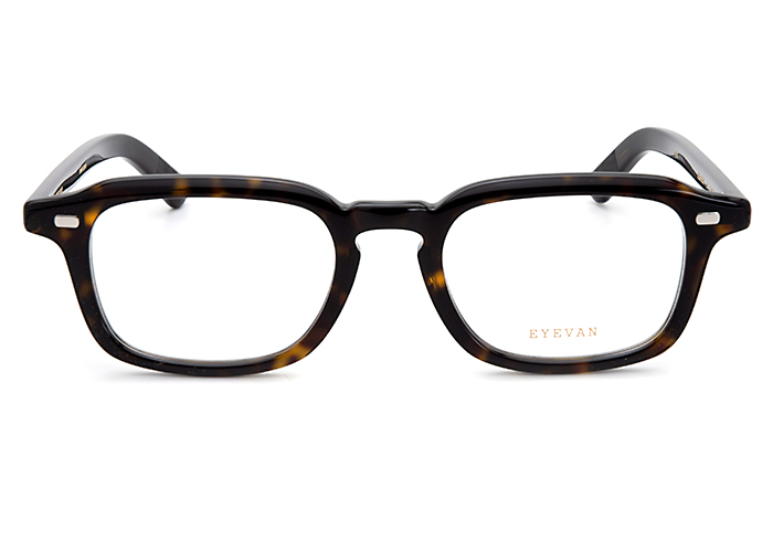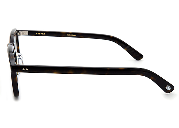 Lower East Sideのリヴィントンストリートに隣接するBeastie Boys Square付近で出会った、サングラスをかけた男性の姿から着想を得たモデル。横長のフロントシェイプに、ブリティッシュヴィンテージに見られるレクタングル型の要素をミックス。ヨロイにはサンプラチナ製の飾り丁番を合わせ、シンプルにまとめた。クラシックなフォルムにストリートの空気感を掛け合わせる、EYEVANが繰り返し用いてきたデザインアプローチのひとつ。