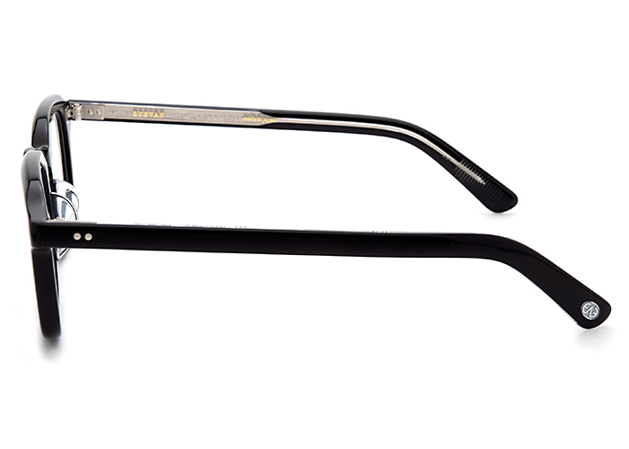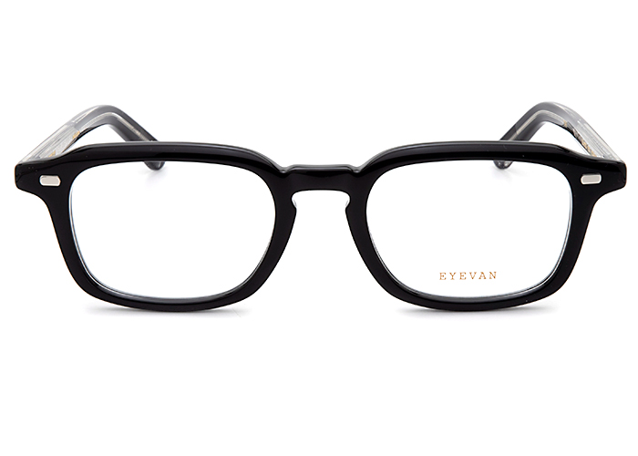 Lower East Sideのリヴィントンストリートに隣接するBeastie Boys Square付近で出会った、サングラスをかけた男性の姿から着想を得たモデル。横長のフロントシェイプに、ブリティッシュヴィンテージに見られるレクタングル型の要素をミックス。ヨロイにはサンプラチナ製の飾り丁番を合わせ、シンプルにまとめた。クラシックなフォルムにストリートの空気感を掛け合わせる、EYEVANが繰り返し用いてきたデザインアプローチのひとつ。