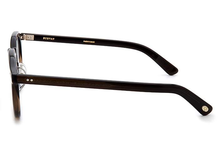 1950年代のフレンチヴィンテージをベースに、ウェリントンとクラウンパントの中間的なレンズシェイプをホーンリムに融合させた、2024SSシーズンモデル『Albedo』のリメイク。リムはやや太めに再構築し、テンプルは新たなデザインを採用。ヨロイには成形精度に優れたサンプラチナを用い、通常の3倍以上のプレス工程を経て完成する、オリジナル のかしめ飾りを組み合わせた。