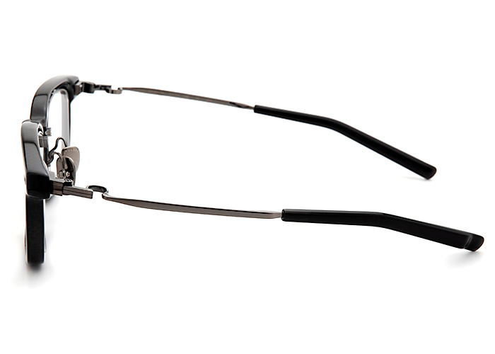 カーボン素材がもたらす高いフロント強度によって、智元のヒンジの機能性が最大限発揮され、軽快かつ快適な掛け心地が生まれます。独自のダブルフロント構造は、フレームの一体感を崩すことなくレンズを独立して固定。フロントのツヤとマットで大きく印象を変える、精悍さを纏ったフレームです。