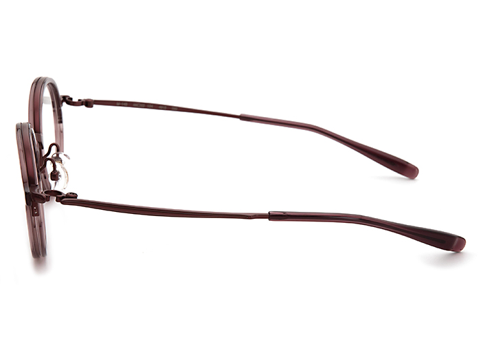 『M-145シリーズ』は華やかな色合いのプラスチックリムと、凛とした表情のメタルテンプルが美しく調和したレディースモデル。装飾を控えめにしたミニマルなスタイルが、フレームとしての完成度の高さを際立たせ、軽やかさと高い質感を併せ持ちます。日常に快適さと彩りを添えるミックスフレームです。「M-145」はラウンドシェイプのモデルです。
