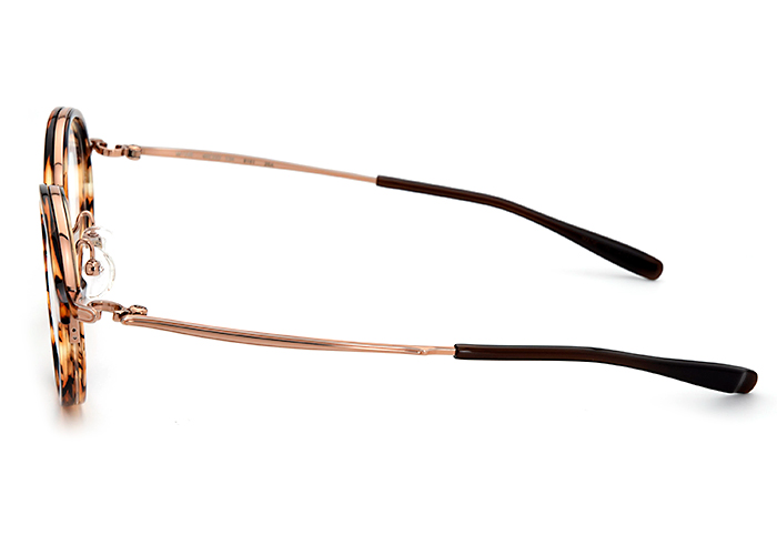 『M-145シリーズ』は華やかな色合いのプラスチックリムと、凛とした表情のメタルテンプルが美しく調和したレディースモデル。装飾を控えめにしたミニマルなスタイルが、フレームとしての完成度の高さを際立たせ、軽やかさと高い質感を併せ持ちます。日常に快適さと彩りを添えるミックスフレームです。「M-145」はラウンドシェイプのモデルです。