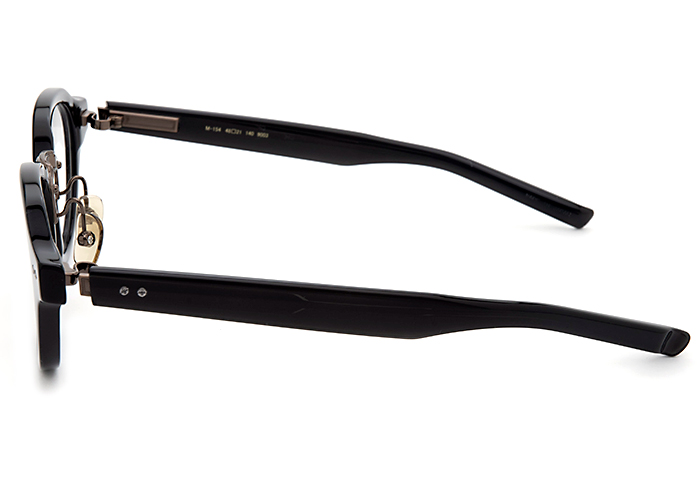 美しさと機能性を兼ね備えた、素材と造形の妙が光る異素材ミックスの『M-154シリーズ』。ボリューミーで存在感のあるプラスチックに、強度とデザイン性を兼ね備えたメタルパーツを融合。顔立ちに自然と馴染みながら、確かな存在感を放ちます。「M-154」はボストンシェイプのモデルです。