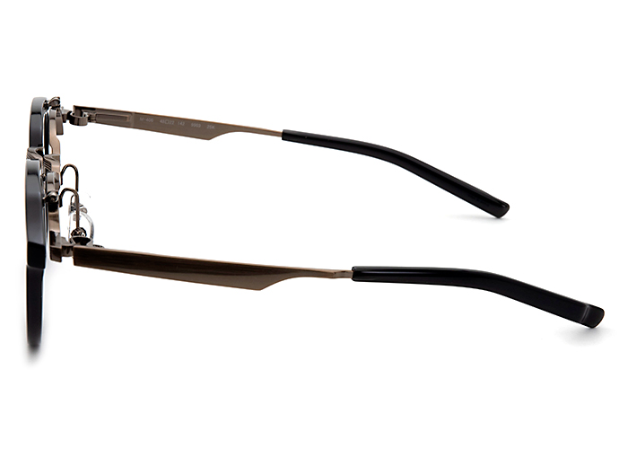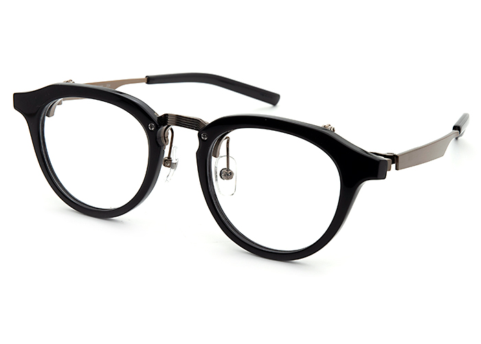 「M-400」は跳ね上げのミックススタイル。柔らかな雰囲気を醸し出すプラスチックリムに、上質さを添えるメタルブリッジを組み合わせたデザイン。異なる素材が織りなす美しいバランスが、洗練された印象と際立つ個性を引き立てます。