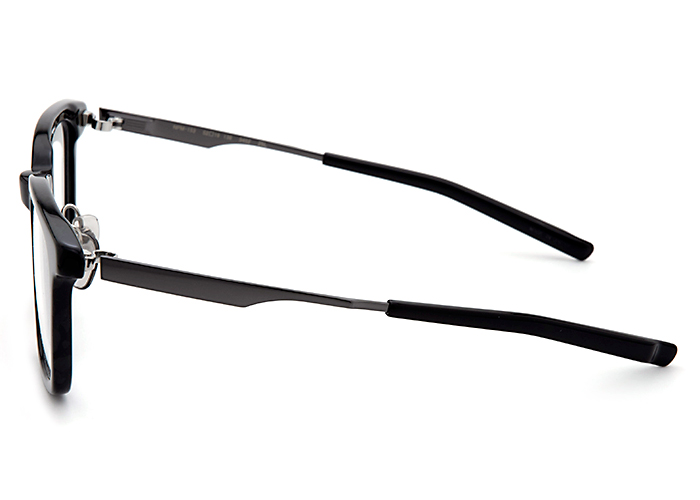 レンズシェイプとフロントのアウトラインにギャップを設けフロントにアクセントを加えた『NPM-152シリーズ』。直線的でシャープな印象のメタルテンプルと相まって、掛ける人の魅力を引き立てつつさりげなく個性を演出する、洗練されたコンビネーションスタイルです。「NPM-153」はスクエアシェイプのモデルです。