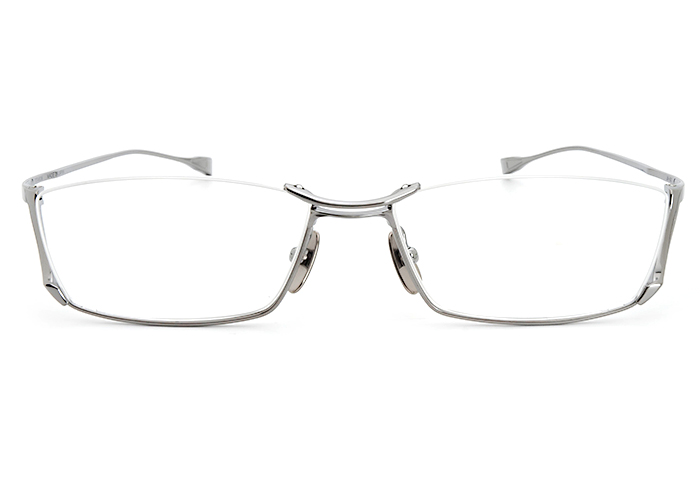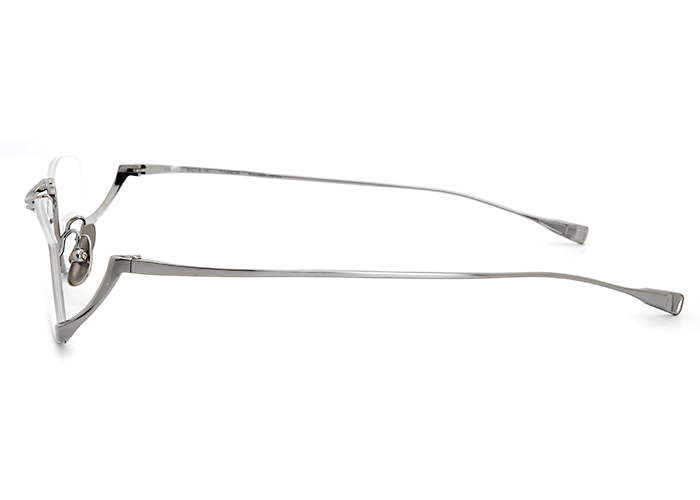 細身でありながらも存在感を放つアンダーリムは、JAPONISMの真骨頂であるシャープでありながらも力強さを放つモデル 。日本刀をモチーフにしたヨロイパーツは、研ぎ澄まされたような造形美を表現しており角度によって異なる表情を演出します。テンプルはβチタンの線材をプレス加工することでしなやかなバネ性をもたせ、自然なフィット感と長時間着用しても疲れにくい快適さを実現。さらに、テンプルエンドに適度なボリュームをもたせることで掛けた際の比重バランスとアイコンとしての形状を両立させました。カラーリングは、アンダーリムの美しいフォルムを引き出すため単色で構成。シンプルでありながらも洗練された造形美です。