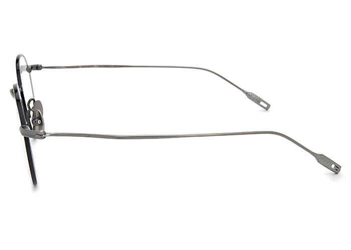 無駄な装飾を省いた細身でミニマルなデザインのJS-170をサイズアップして新たにリリースしたモデル。幅広いスタイルを提案する機能的且つファッショナブルなモデルに仕上げました。日本の家紋の一種「七宝紋」の模様を模した奥行き感のあるブリッジはsenseらしい遊び心に加えフレーム全体の調和を深めます。優美な曲線を描く新設計のテンプルはこめかみへの圧迫軽減と掛け心地の良さを追求し、曲線美と機能美を兼ね備えています。アイコンでもある鎚目模様と着脱モダンは新設計テンプルでも採用。金属を叩きかしめる事で生まれる鍛造特有の荒くも温もりのある表情には造り手の想いが宿ります。