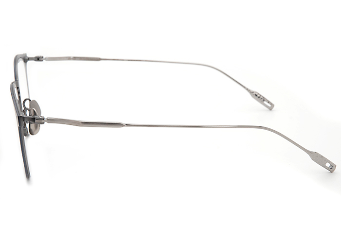 圧延したチタン板材から削り出したスッキリとしたウェリントンタイプ。フロント側面に施したコンマ数ミリの溝を境に、遊び心のあるカラーを塗り分け2mm厚のフロントに奥行き感を与えてあります。板を張り合わせたような装いが日本の重ねの美を表現しており、繊細な美しさをより一層引き立てます。伝統色を再現した落ち着きのあるカラーリングと、細部まで丁寧に仕上げられた職人の想いや温もりを随所で感じるモデルに仕上がっております。