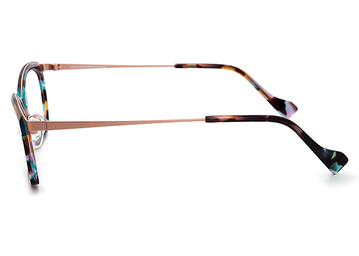 人気モデルのBRIGITTE (ブリジットゥ) と同様にフロントパーツにステンレスバーをセル生地で挟み込んで3色3段のラインを作ってあります。ソフトスクエアシェイプが都会的でアクティブな女性を象徴するかのような、エレガントでありながらモダンなモデルです。