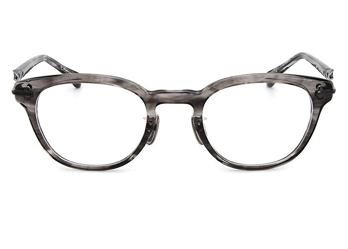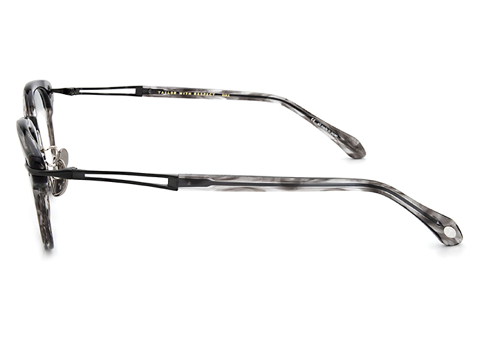 アセテートとチタンの良さを引き出したハイブリットなフレームは、思春期に観たムービースターの眼鏡がモチーフ。T字のヨロイは、オールプラスチックフレームに比べ調整がしやすく、程よいフィット感を生み出しています。アセテート生地が大部分を占めるため、オールプラスチックの雰囲気を楽しめます。