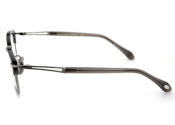 コレクションでは数少ないアセテートブローモデル。オーソドックスさを感じるこのフレームには、安心できる強度が備わっています。それは、ブリッジとリム、ブローを留めるピン、ブロー智までもを、一体加工で仕上げることで生まれました。ベーシックな造形に落とし込んだ拘りが光るフレームです。