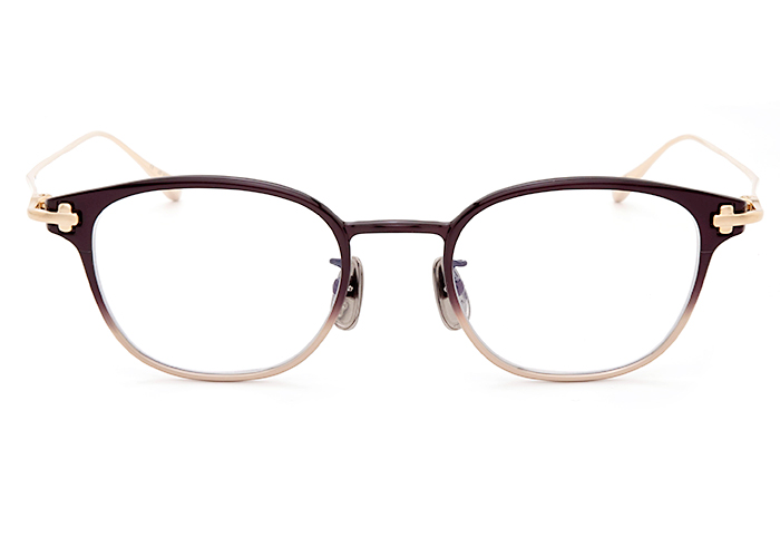 滑らかな曲面を持つフロントが美しいフレームmellow(メロー)。一般的に冷たく硬い印象を与えてしまうチタン素材ですが、金型設計に拘り、手間と加工時間をかけることで、柔らかな印象になるようデザインしました。メタル枠でありながらも、顔に溶け込むような曲面を持つ、柔らかな造形に仕立て上げました。