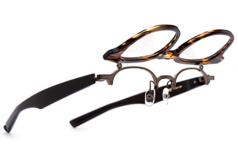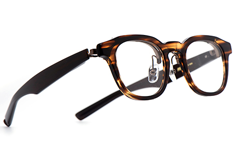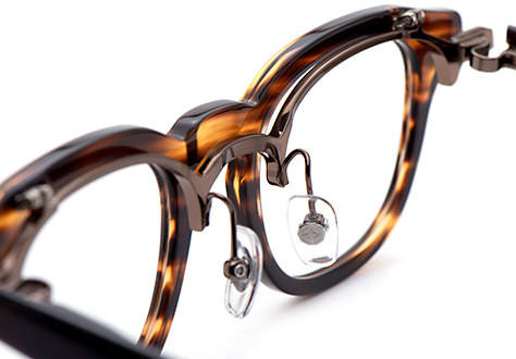 跳ね上げの可動域は広く、開閉動作には安定感を。緻密なセッティングから生み出される機能性が、プラスチックフレームの表情を崩すことなく、掛ける人の所作を快適かつ上質に導きます。