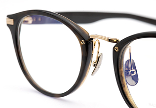 デリケートな素材を逆Rパーツが衝撃から守り、高度な技術で頭部をやさしく包み込むようにバッファローホーンを削り出したテンプルと相まってフォーナインズらしい掛け心地を生み出しています。