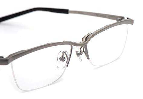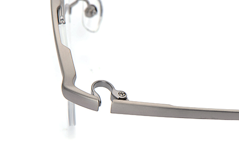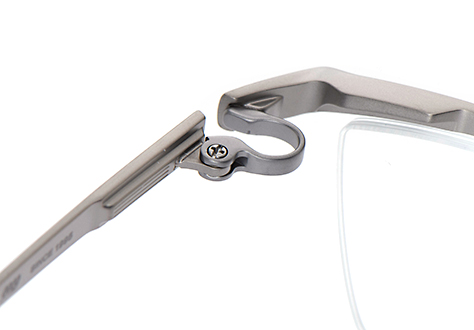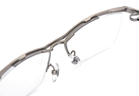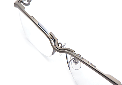 ボリュームのある智に支えられたフレキシブルな逆Rヒンジが、フロントにかかる負荷を解消。ブロウバー裏側に収まる絶妙な位置に配置され、掛けた際のメタルブロウの美しいラインをよりいっそう際立たせます。