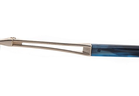 テイラーウィズリスペクトが提唱する、しなやかなカーブを描くSラインのテンプルでは、内側に湾曲するため、顔とフレームの距離が極端に開かず、かけた時のスッキリとしたデザインが可能となります。