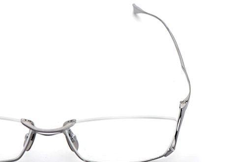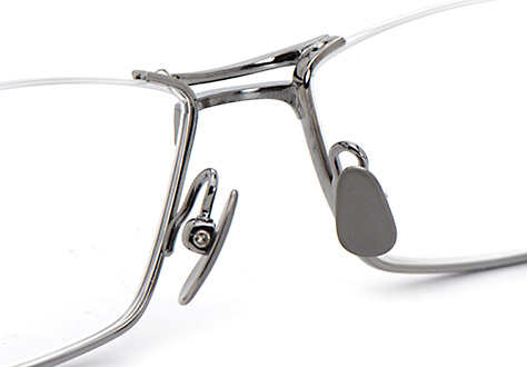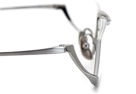 特徴的なダブル構造のブリッヂはフロント強度を高め、ジャポニスムらしいスタイルに仕上げたものです。また、従来の鼻パットの表面とは違い、滑りにくい砂打ちされた新たなチタン製鼻パッドを採用することで、より一層のフィット感を生み出しました。