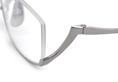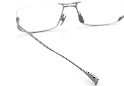 テンプルはβチタンの線材をプレス加工することでしなやかなバネ性をもたせ、自然なフィット感と長時間着用しても疲れにくい快適さを実現。さらに、テンプルエンドに適度なボリュームをもたせることで掛けた際の比重バランスとアイコンとしての形状を両立させました。