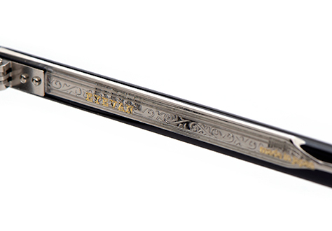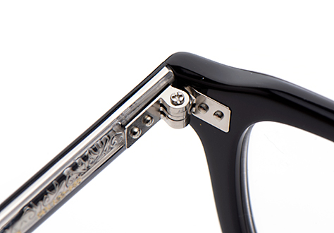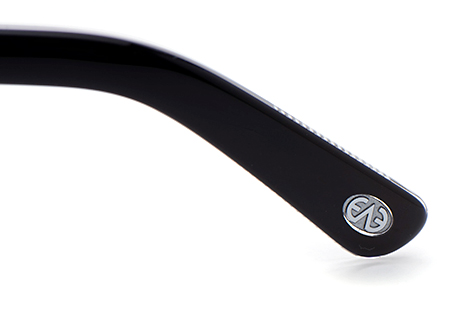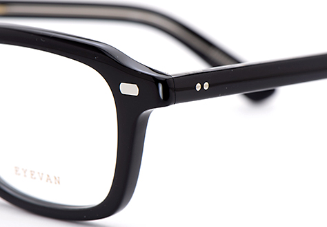 テンプルの芯金にはクラシカルな模様を施すなど随所に作り込まれたパーツを採用、テンプルエンドにはEYEVANのロゴプレートが埋め込まれています。