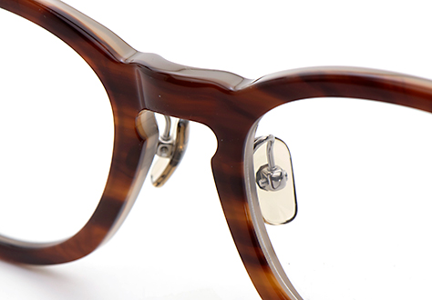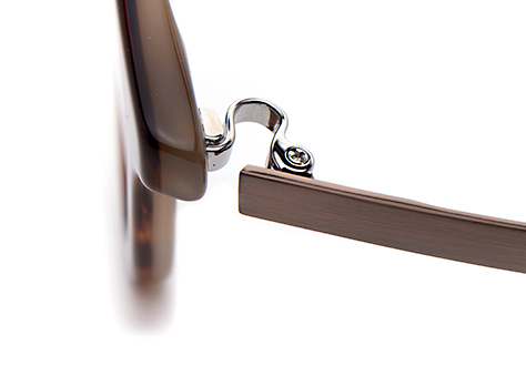 直線的でシャープな印象のメタルテンプルと相まって、掛ける人の魅力を引き立てつつさりげなく個性を演出する、洗練されたコンビネーションスタイルです。