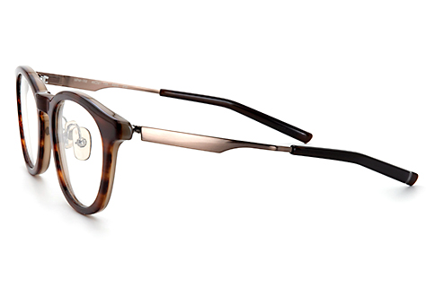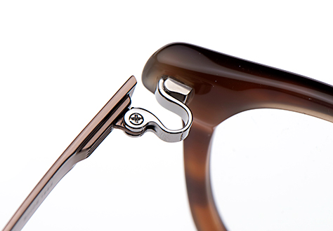 独自設計の逆Rヒンジが頭部を包み込む快適な掛け心地を実現。プラスチックフロントとメタルテンプル、それぞれに対照的な印象を持つ異素材の調和が、機能とスタイルの両面で美しい表情を作り出します。