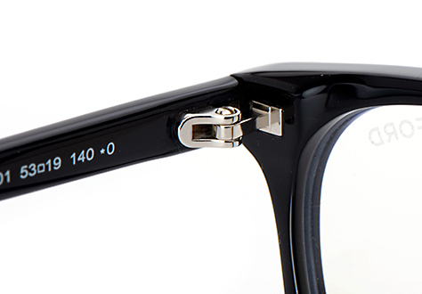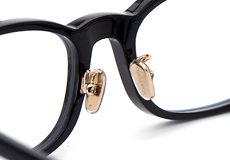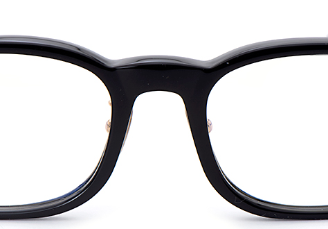 シンプルなテンプルに合わせて蝶番パーツは3枚蝶番を採用。組み込まれたレンズはブルーライトカット付きのレンズです。オシャレな伊達メガネとしてもそのままかけることも可能です。