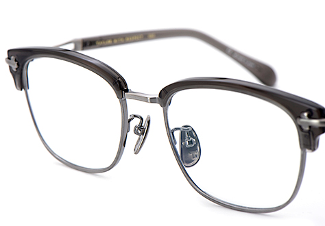 コレクションでは数少ないアセテートブローモデル。オーソドックスさを感じるこのフレームは、ベーシックな造形に落とし込んだ拘りが光るモデル。ブランドを象徴する十字型のヨロイパーツがフレーム全体の印象を引き締めます。