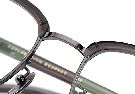 ブリッジとリム、ブローを留めるピン、ブロー智までも一体加工で仕上げることで生まれる安心できる強度を生み出します。
