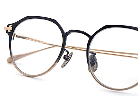 テイラーウィズリスペクトが提唱する、しなやかなカーブを描くSラインのテンプルでは、内側に湾曲するため、顔とフレームの距離が極端に開かず、かけた時のスッキリとしたデザインが可能となります。またこの独自構造のテンプルが顔にフィットするように調整可能で、テンプルがこめかみに当たり食い込んでしまうことを防ぐ優れた構造のテンプルです。