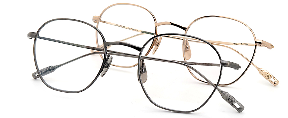 今回入荷の「JS-170-48」は無駄な装飾を省いた細身でミニマルなデザインのJS-170をサイズアップして新たにリリースしたモデルです。日本の家紋の一種「七宝紋」の模様を模した奥行き感のあるブリッジはsenseらしい遊び心に加えフレーム全体の調和を追求したものです。是非、店頭でお確かめください。